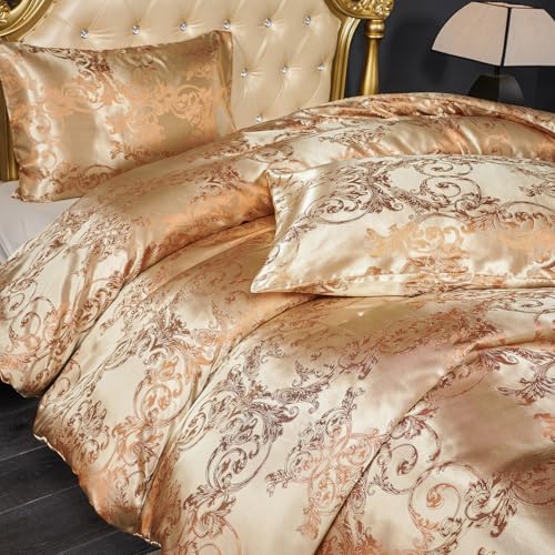 Herside Jacquard Duvet Cover Set Single Champagne Gold Bedding Set Premium Polyester Quilt Cover Royal Damask Bed Cover Luxury Bedding Set with Vintage Paisley Pillowcase
