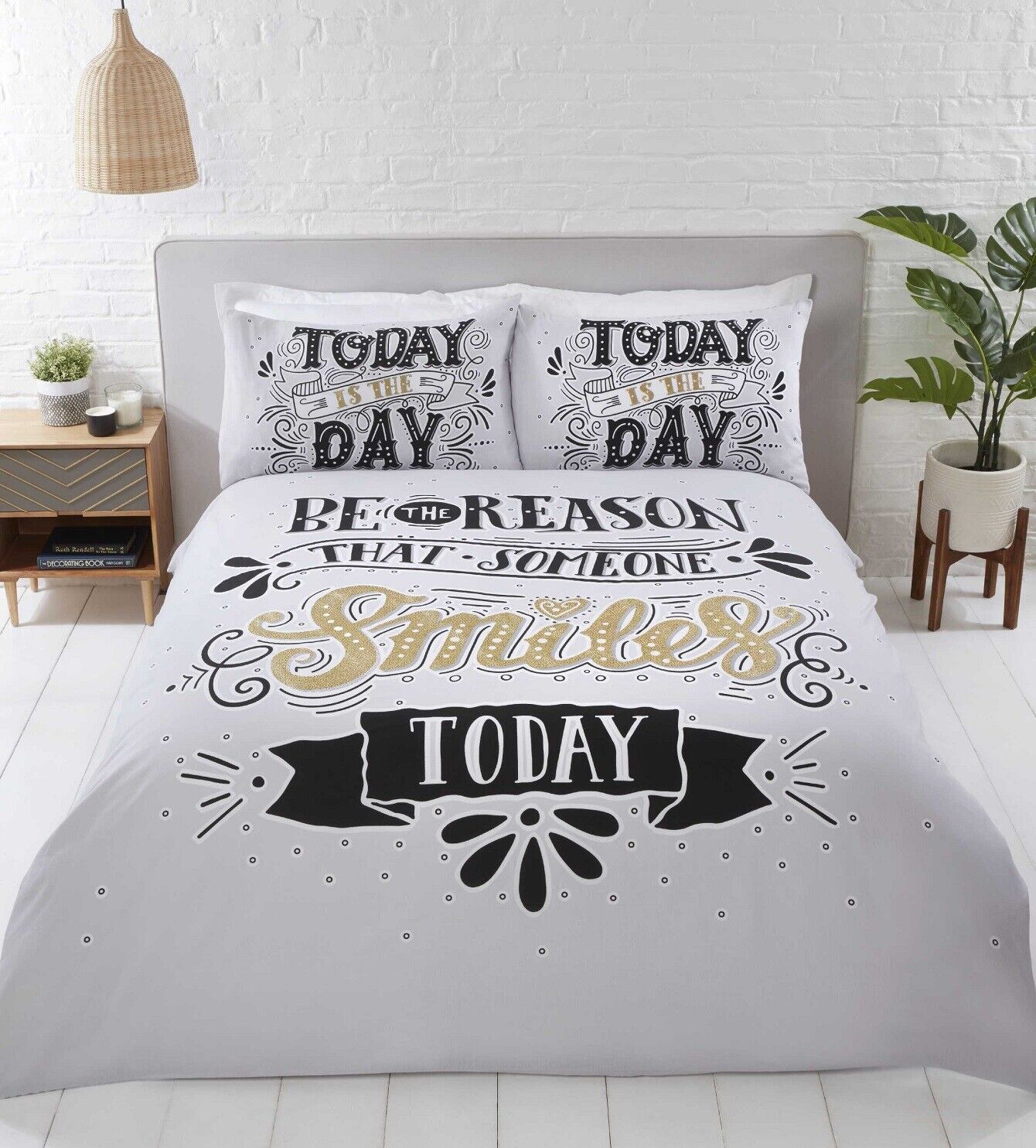 Today is The Day Duvet Cover Teenagers Double Quilt Bedding Bed Set Black & Gold