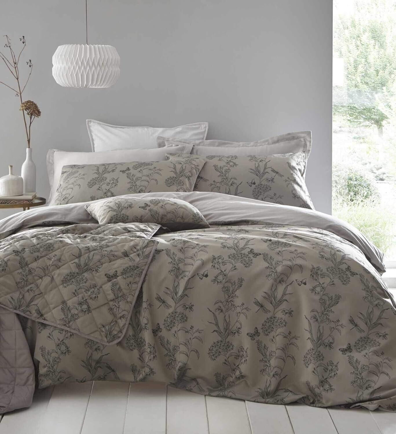 Foliage Delicate Floral Duvet Cover 100% Cotton Double Quilt Bedding Set Gold