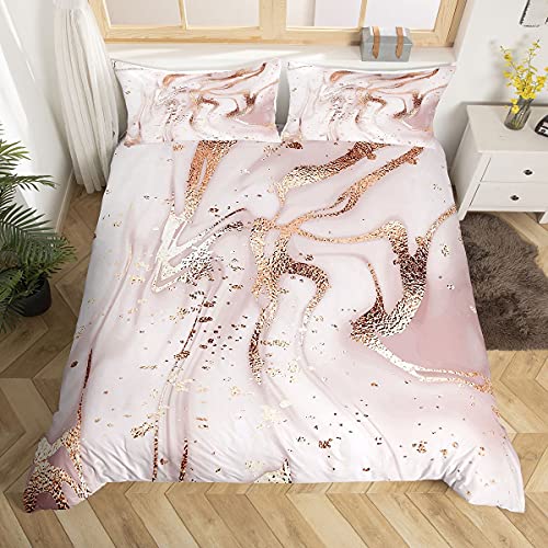 Rose Gold Marble Bedding Set Marble Duvet Cover For Kids Children Teens Golden Glitter Cracked Lines Comforter Cover Liquid Abstract Art Bedding & Linen Unique Design Double