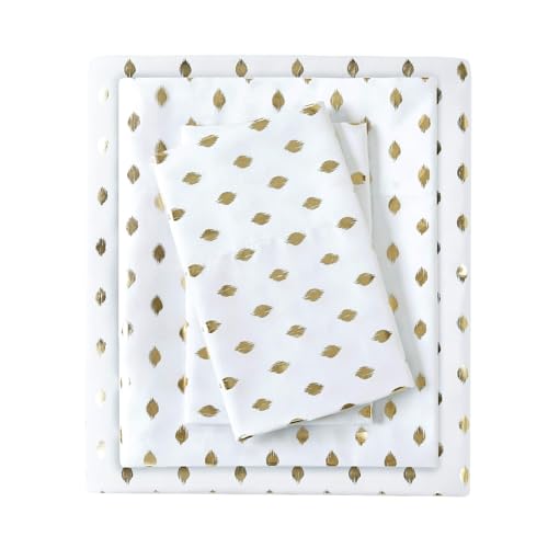 Intelligent Design Microfiber Cozy Bed Sheet Set, Modern All Season Bedding & Pillowcases, Premium 14" Elastic Pocket Fits up to 16" Mattress, Twin White/Gold Metallic Dot 3 Piece