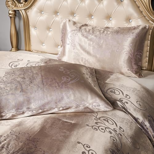 Herside Jacquard Duvet Cover Set Double 3pcs Champagne Gold Bedding Set Premium Polyester Quilt Cover Royal Damask Bed Cover Luxury Bedding Set with Vintage Paisley Pillowcases
