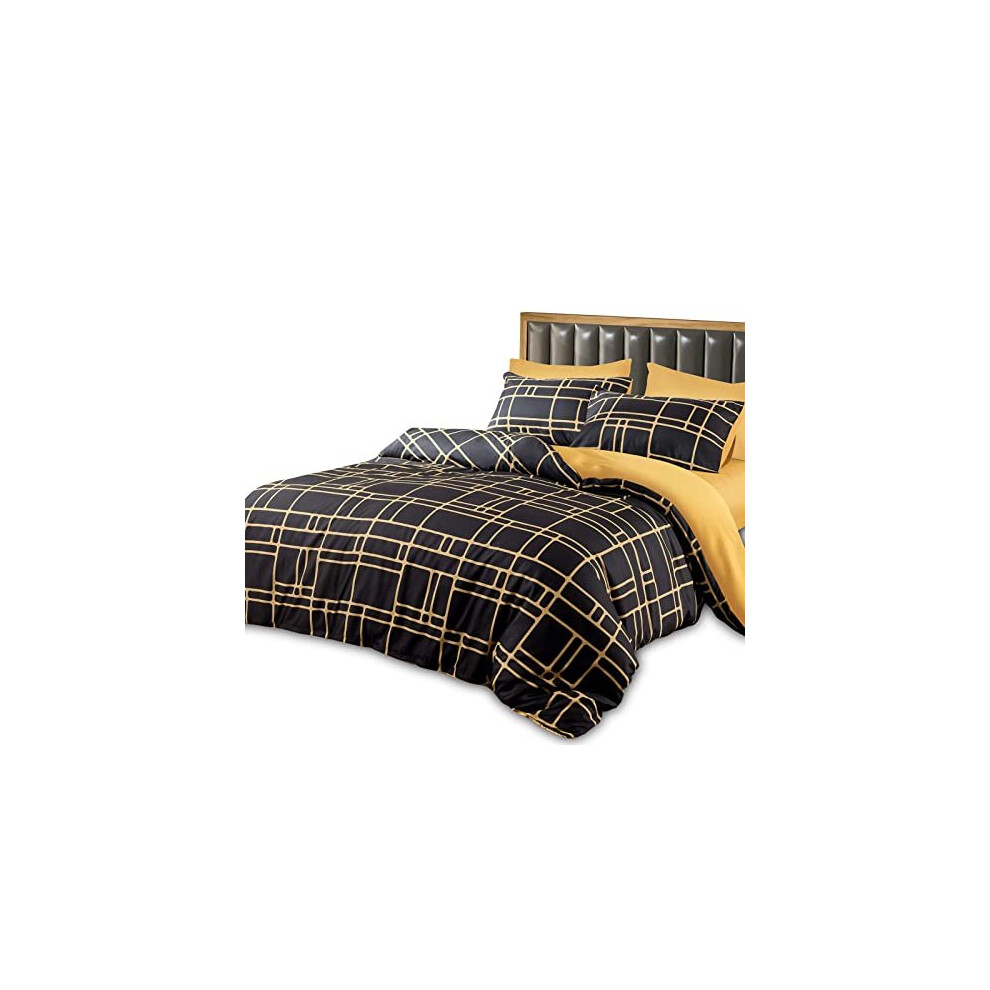 Pamposh Double Duvet Set Black & Gold Doublesided Bedding Set 3 PCS With Pillowcases Ultra Soft Anti Allergic Non Iron Luxury Microfiber (Bl