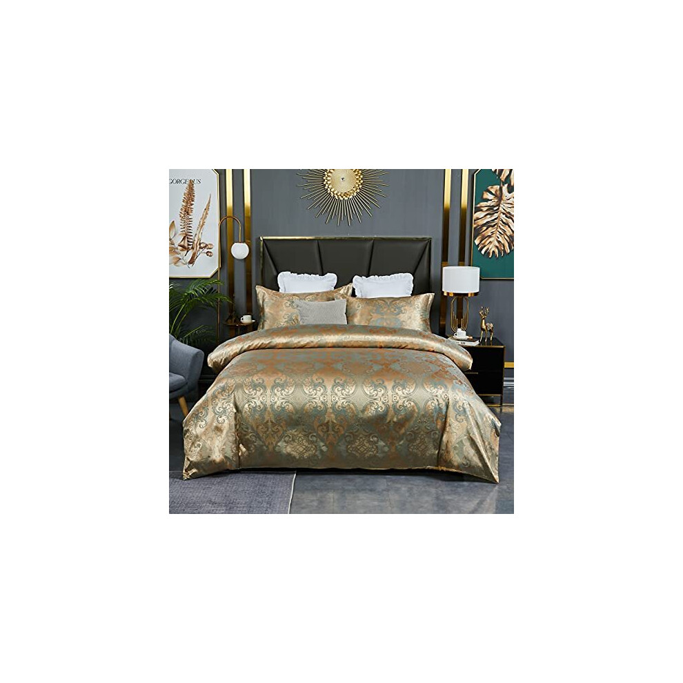 Hmtideby King Jacquard Duvet Cover Set - Gold 3-Piece Microfiber Bedding with 2 Pillowcases, 240x220 cm