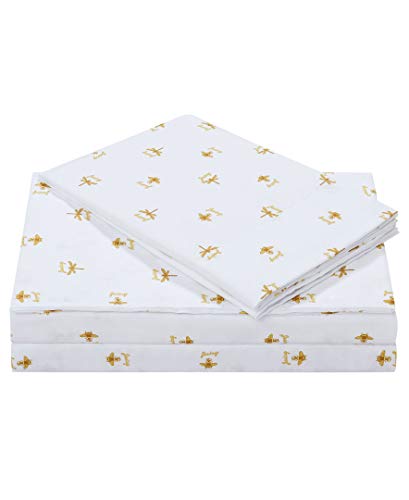 Juicy Couture – Sheet Set | Queen Bee Design Bed Sheets| Twin Size Bedding | 3 Piece Set Fitted Sheet, Flat Sheet and Pillowcase | Deep Pockets, Wrinkle Resistant and Anti Pilling | White and Gold