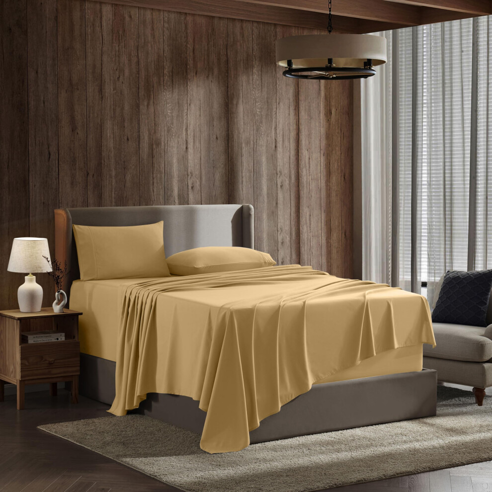 Elegant Comfort Luxury Soft 1500 Premier Egyptian 4-Piece Premium Hotel Quality Wrinkle Resistant Coziest Bedding Set, All Around Elastic Fitted Sheet, Deep Pocket, Twin/Twin XL, Camel/Gold