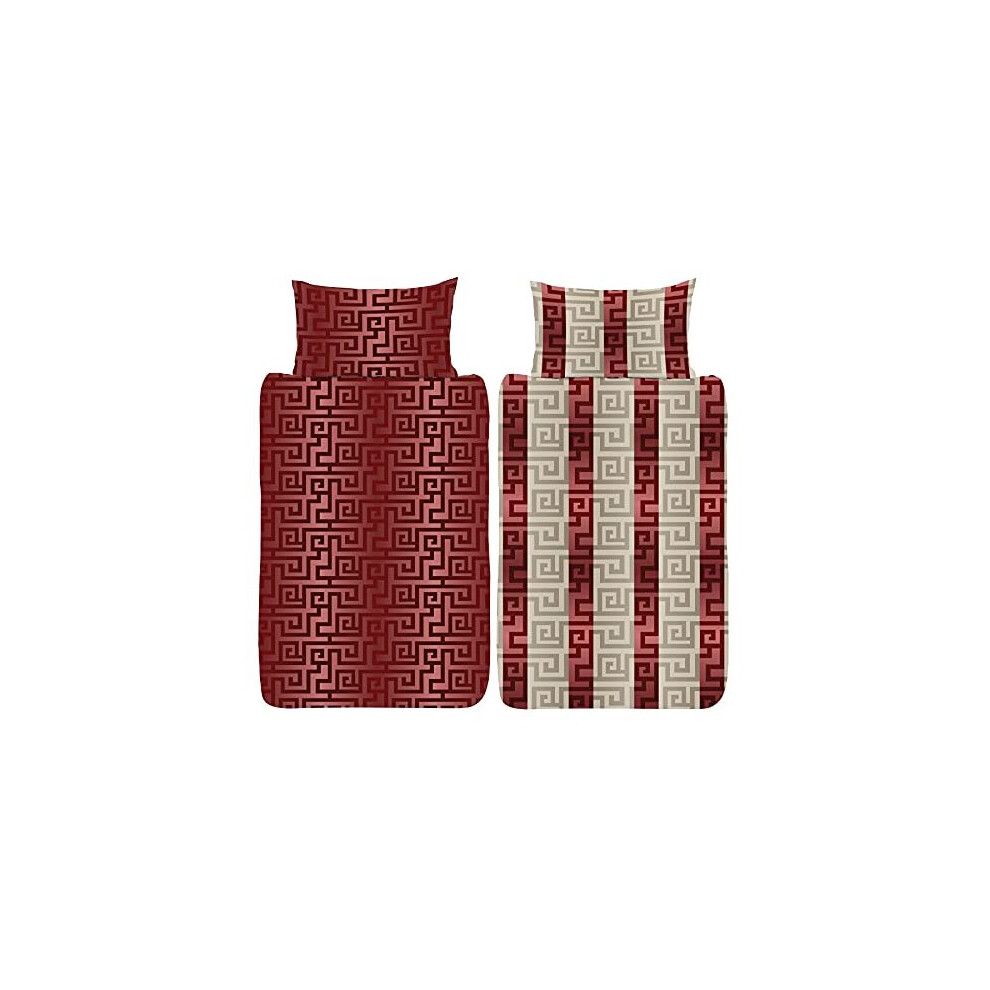 K Collection Athena Duvet Cover - Greek Meander Reversible Bedding Set - Greek Key Design - 100% Cotton - Single - Red/Gold
