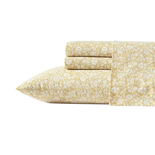 Laura Ashley - Twin XL Sheets Cotton Percale Bedding Set Lightweight & Breathable Home Decor Oeko-Tex Certified (Heirloom Ditzy Gold Twin XL)