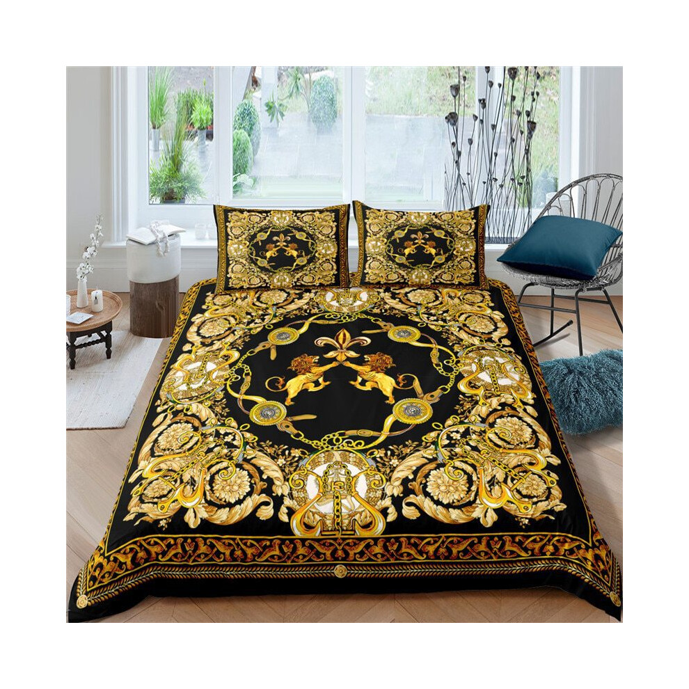 (Style 2, 140*210 Two-piece Set) New three-piece set 3D digital printed bedding gold lion print quilt cover European and American bedding set