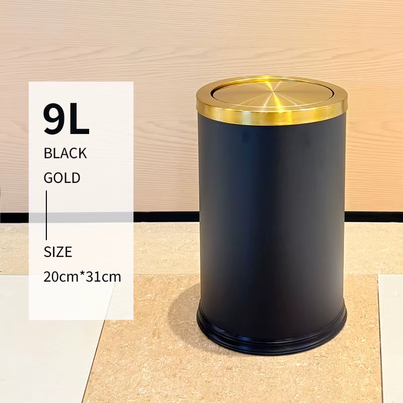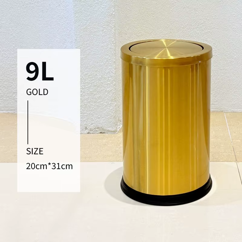 9L Light Luxury Gold Trash Can with Swing Lid ,Gold Garbage Bin for Bathroom ,Li