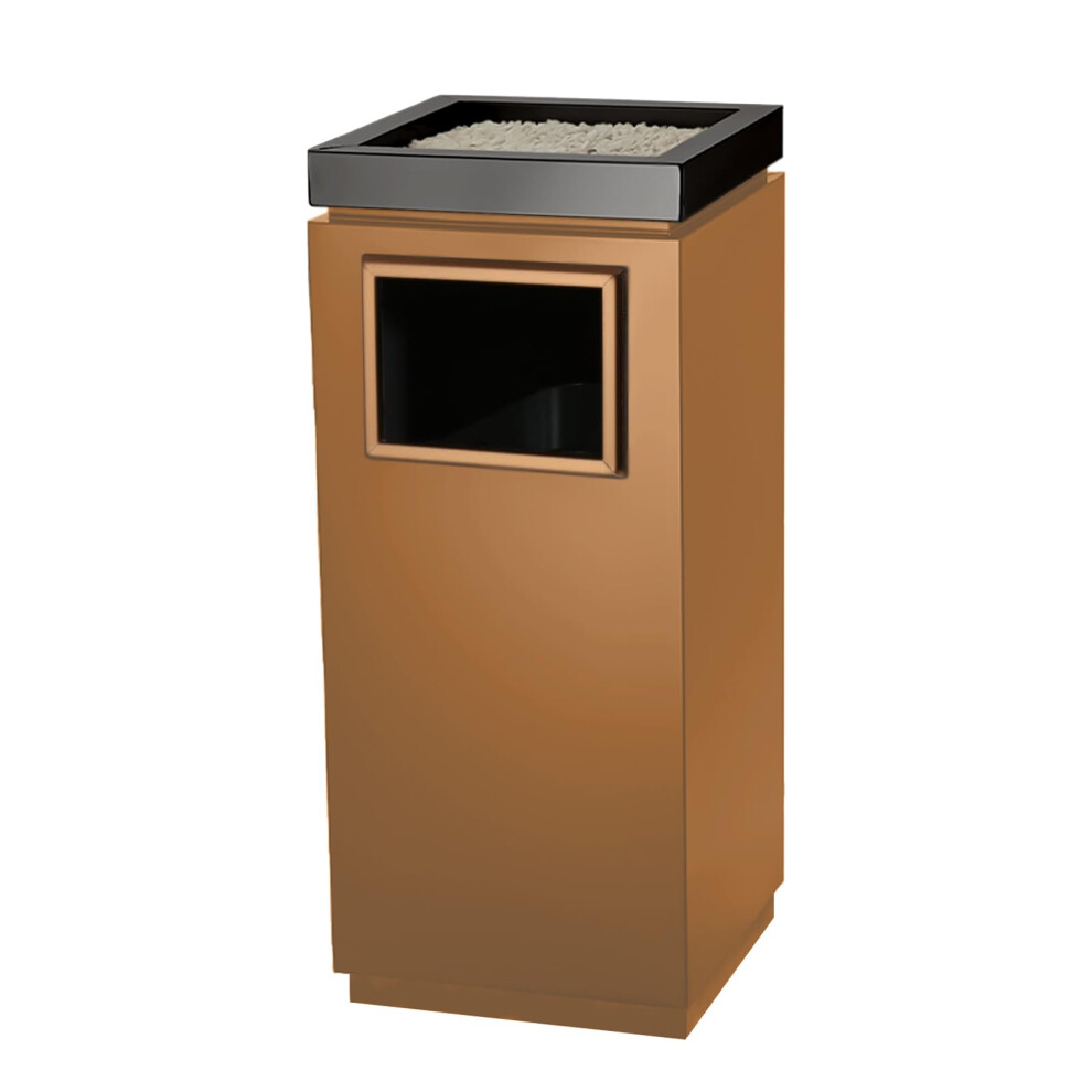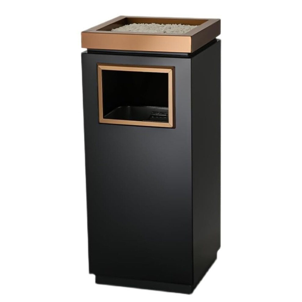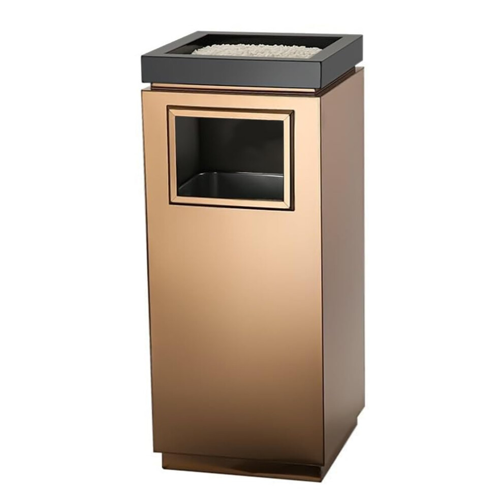 Commercial Stainless Steel Trash Can with Ashtray and Lid, Black Gold Indoor Outdoor Bin for Hotel
