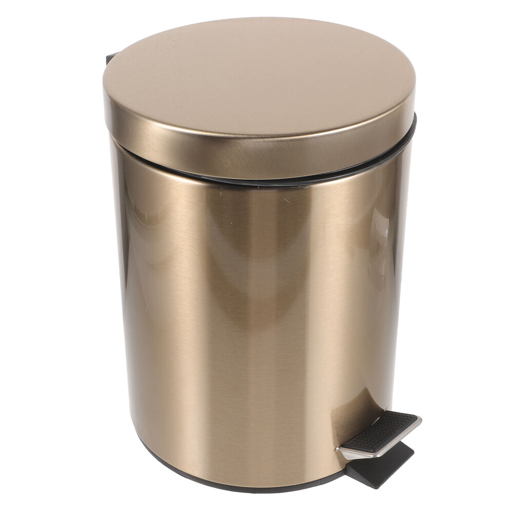 Navaris Gold Pedal Bin 5 Litre - 5L Bathroom Bin with Lid and Removable Inner Bucket for Bathrooms Toilet Kitchen Office or Bedroom - Metallic Gold