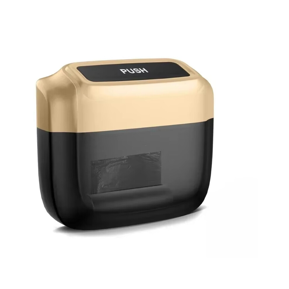 (Gold) Car Trash Bin Hanging Vehicle Garbage Dust Case Storage Box Plastic Pressing Square Trash Can With Lid Auto Interior Supplies