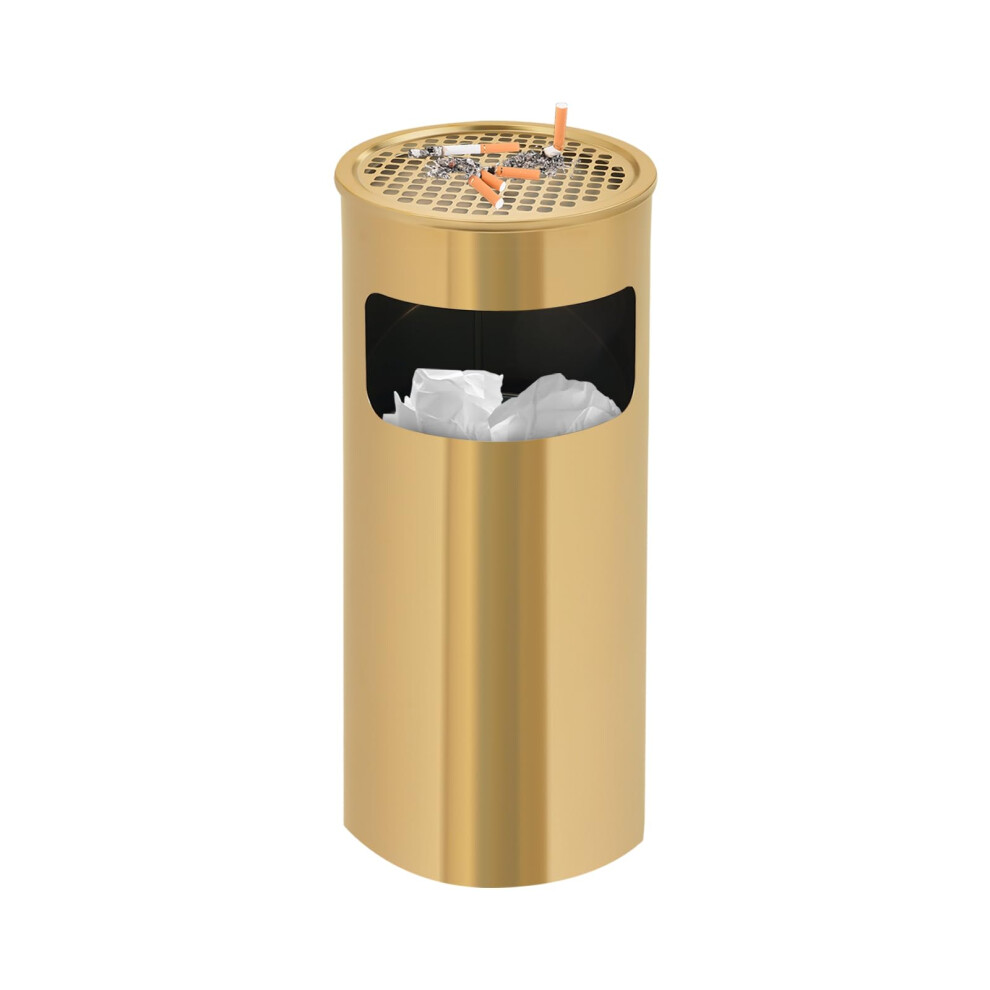 Stainless Steel Trash Can with Ashtray, 3.3 Gallon Rustproof Gold Bin with Removable Inner Bucket