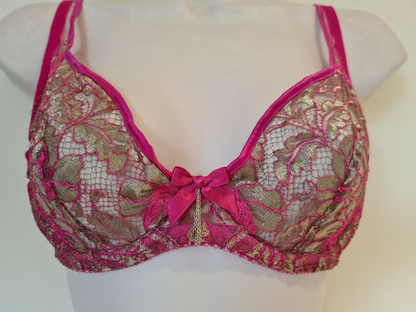 Agent Provocateur Lysianne Pink Fuchsia Gold Bra Underwired Size 36C New W/Tags