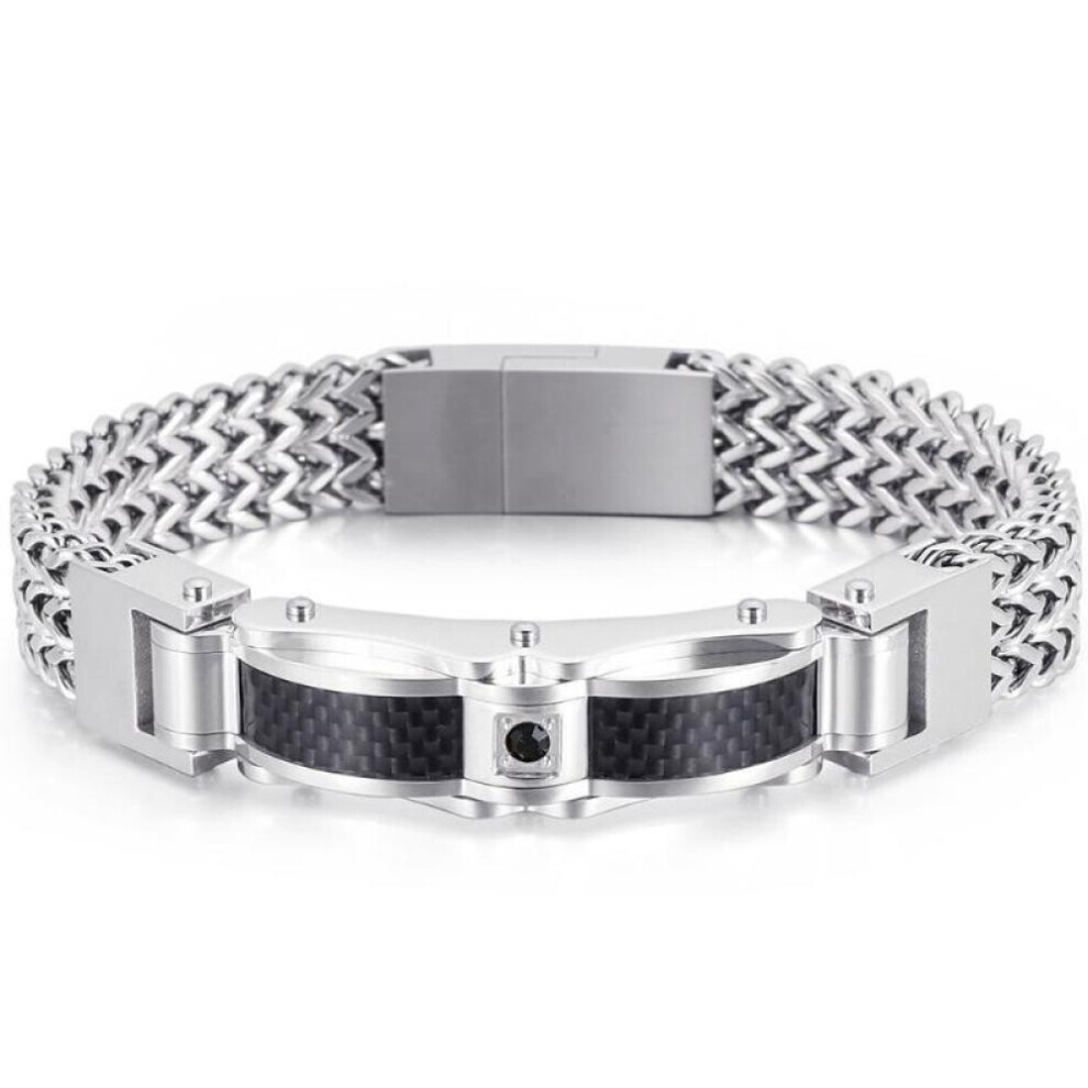 (silver,black, 21cm) Luxury Gold Plated Bracelet For Men 12mm Wide Stainless Steel Square Franco Link Chain Men's Wrist Bracelets With Magnet Cla