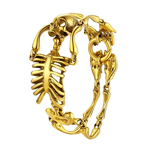 U7 Gold Plated Bracelet For Men Jewellery Skull Bangles Chunky Boys Halloween Bracelets