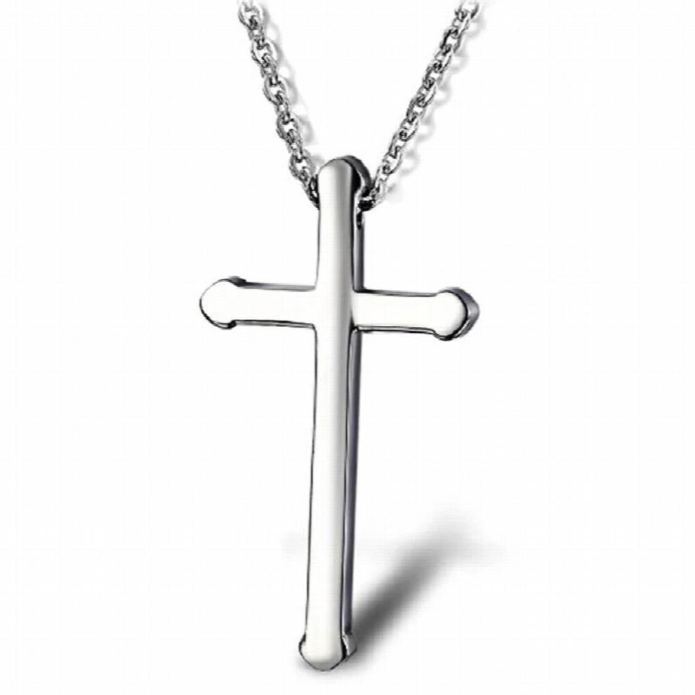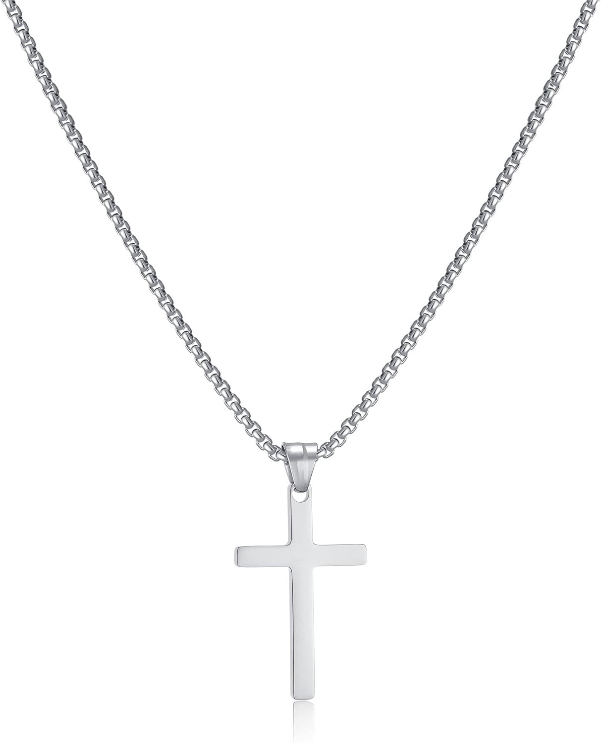 AFSTALR Men's Cross Necklace, Gold/Silver Chain with Cross Pendant, Christianity Jewellery, Stainless Steel silver-55cm