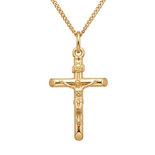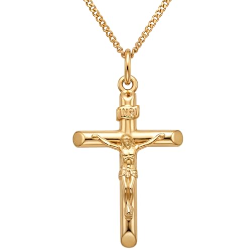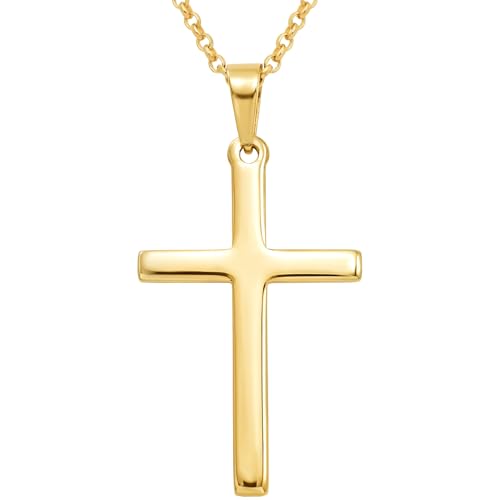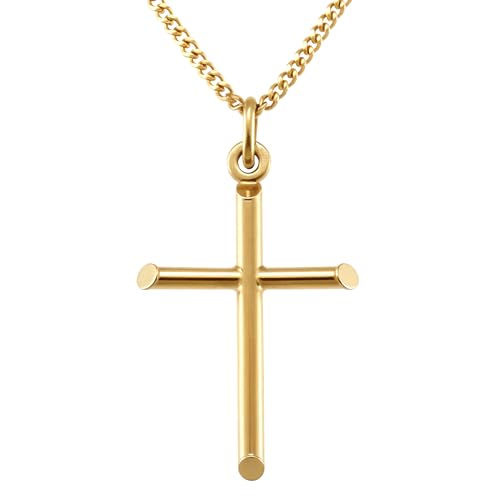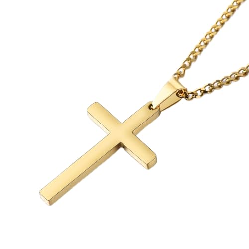 USEEDOVIA Stainless Steel Cross Pendant Necklace for Men Boys, Gold Chain Cross Necklace Jewellery Easter Confirmation Baptism Birthday Christain Gifts for Him