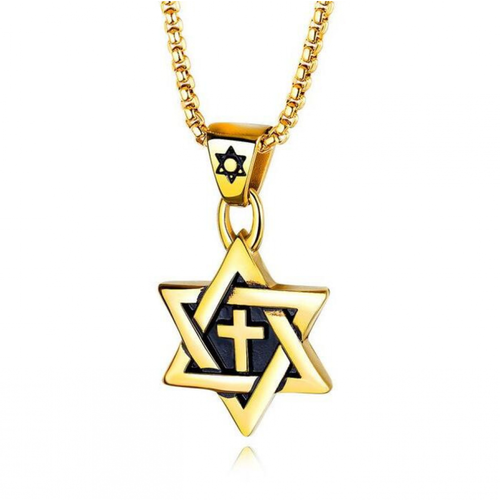 Men Star of David Necklace Stainless Steel Gold Color Chain Cross Megan David Pendant Jewish Jewelry