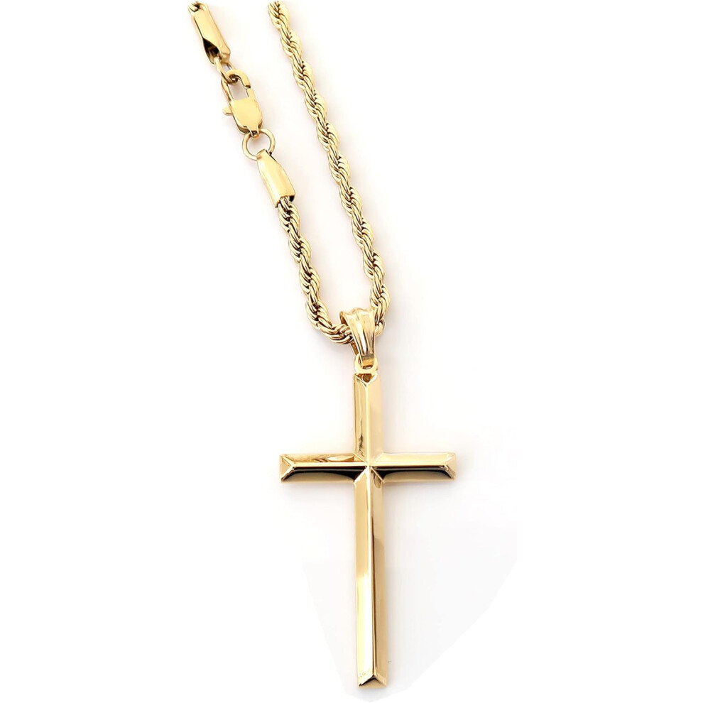 24K Gold Rope Chain Cross Pendant Necklace Gift for Men