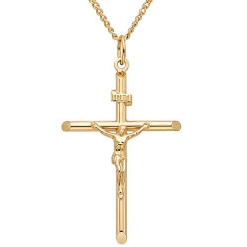 Alexander Castle Solid 9ct Gold Crucifix Necklace for Women - Cross Necklace Pendant with 18" 9ct Gold Chain & Jewellery Gift Box - 26mm x 18mm