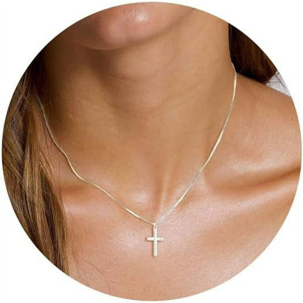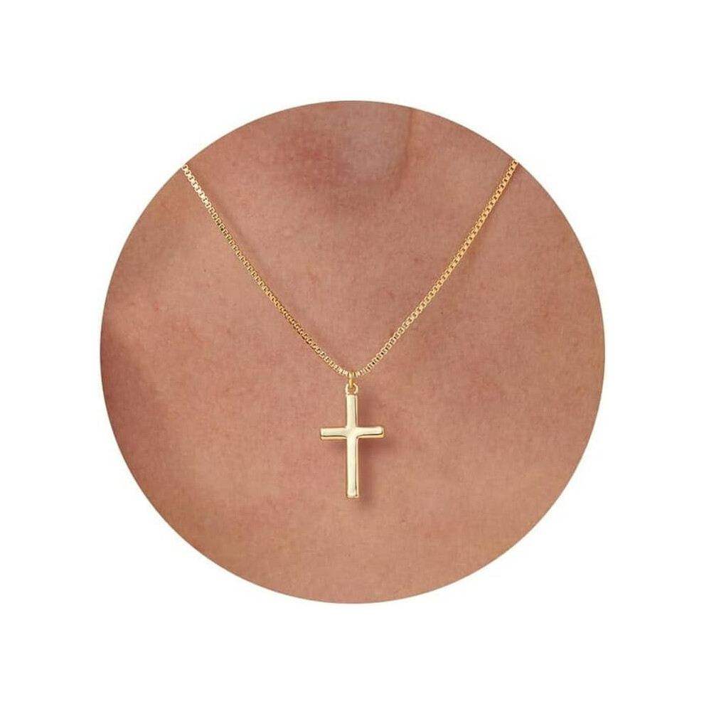 Cross Necklace, 14K Gold Plated Box Chain Cross Pendant Necklace Dainty Simple Silver Cross Tiny Necklace for Women