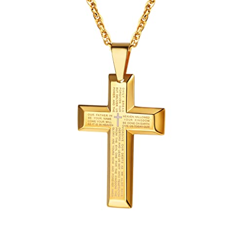 PROSTEEL Cross Necklace for Men, Lord's Prayer Crucifix Pendant with Adjustable Chain 22-24 Inch, Gold Bible Verse Necklace for Men 316L Stainless Steel Jewellery -With Gift Box