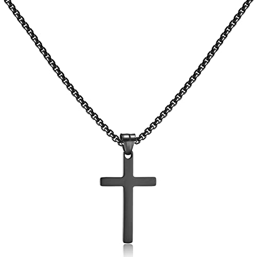 AFSTALR Men's Cross Necklace, Gold/Silver/Black Chain with Cross Pendant, Christianity Jewellery, Stainless Steel 60cm