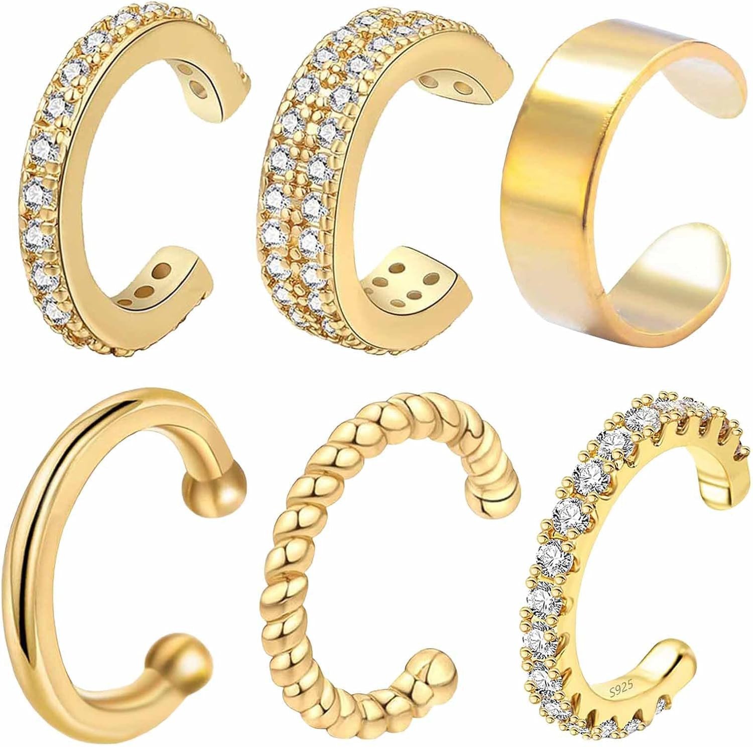 6Pcs Ear Cuff No Piercing, Gold Clip-On Earrings, Adjustable, Fake Earrings for