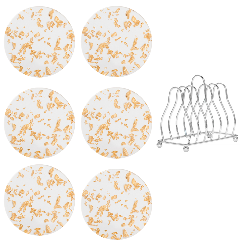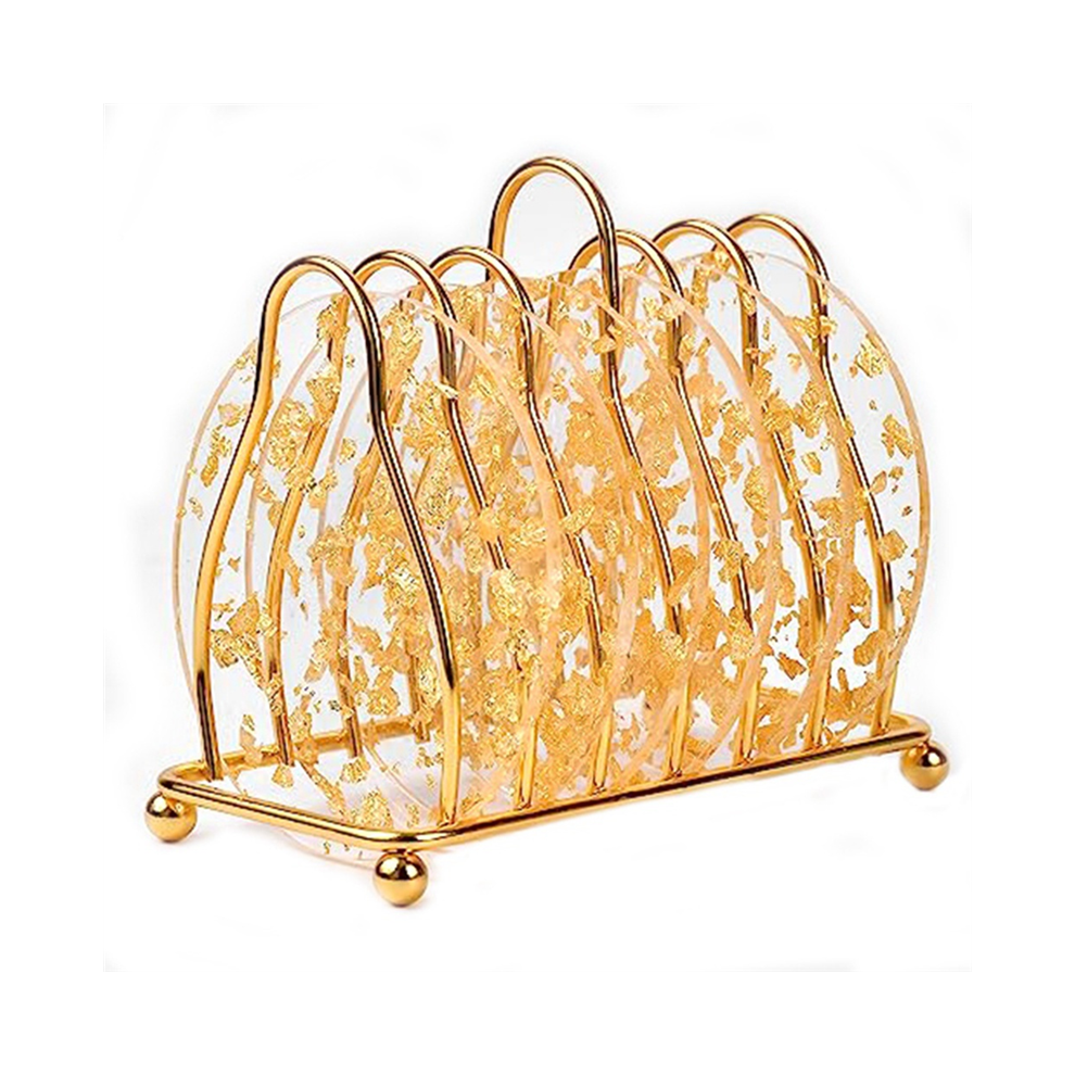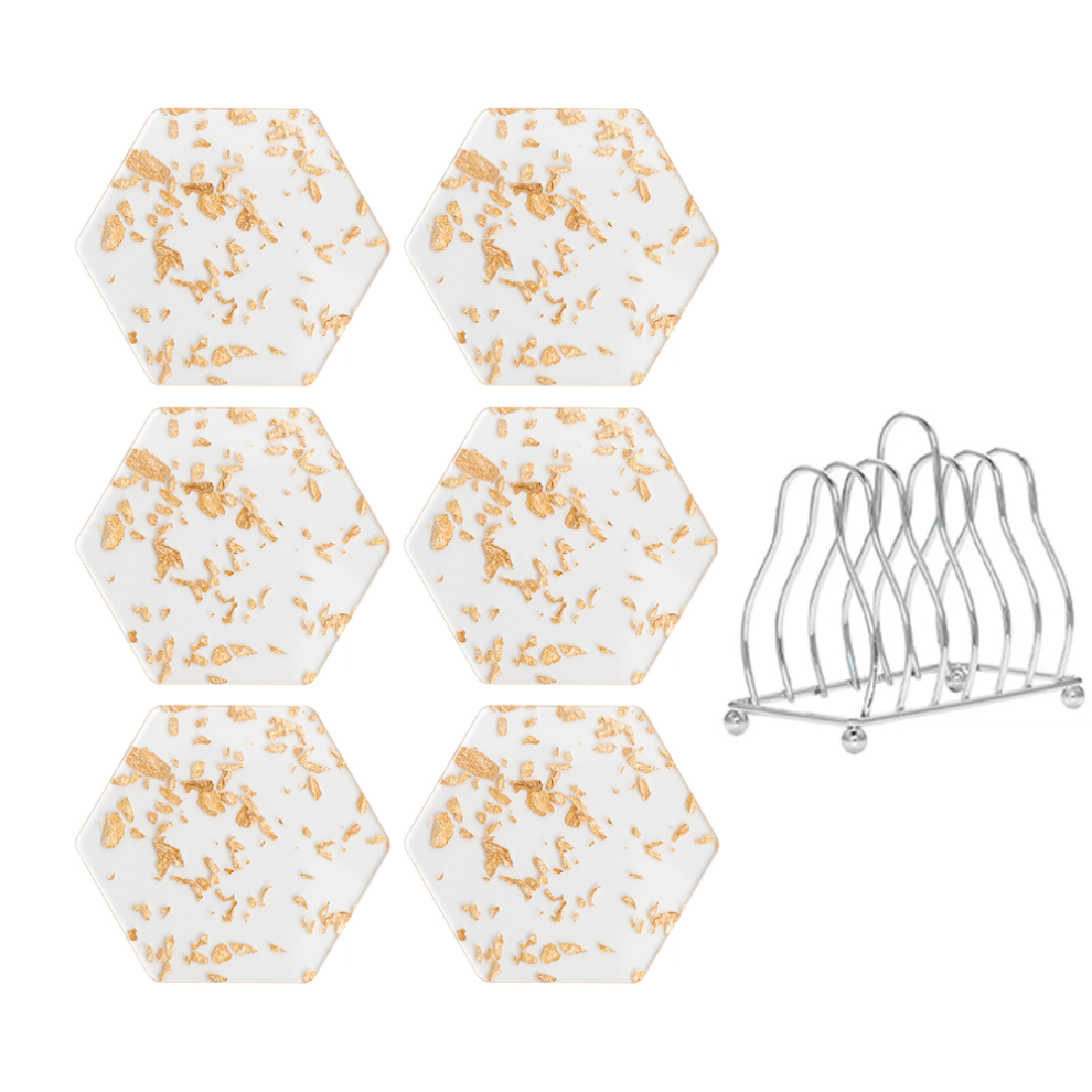 6 Pcs Gold Foil Acrylic Coasters with Holder,Coaster Set