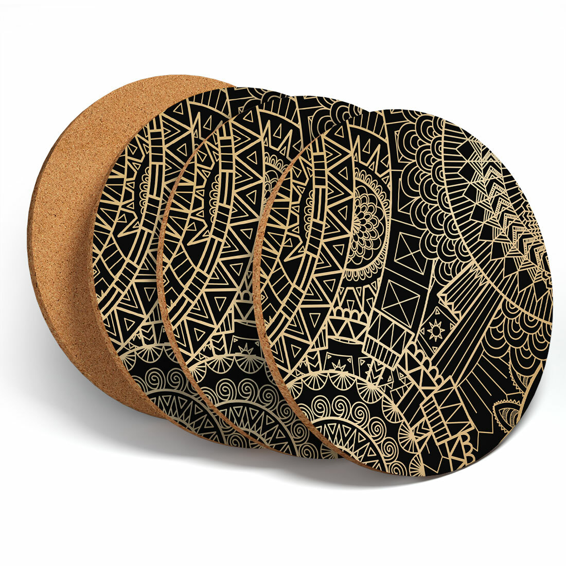 4 set - Fractal Gold Mandala - Coasters Kitchen Drinks Coaster Gift#15540