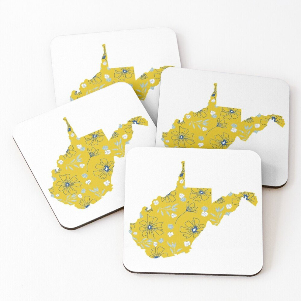 Leather Coasters Gold Floral WV Set of 4 / 4 x 4 inch