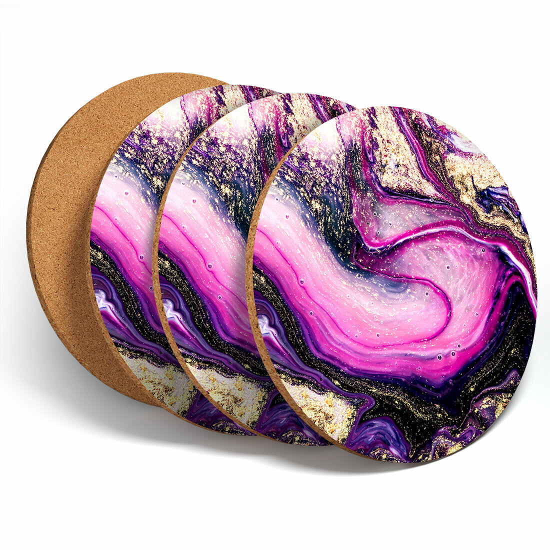 4 set - Ink Art Marble Purple Gold - Coasters Kitchen Drinks Coaster Gift#14829