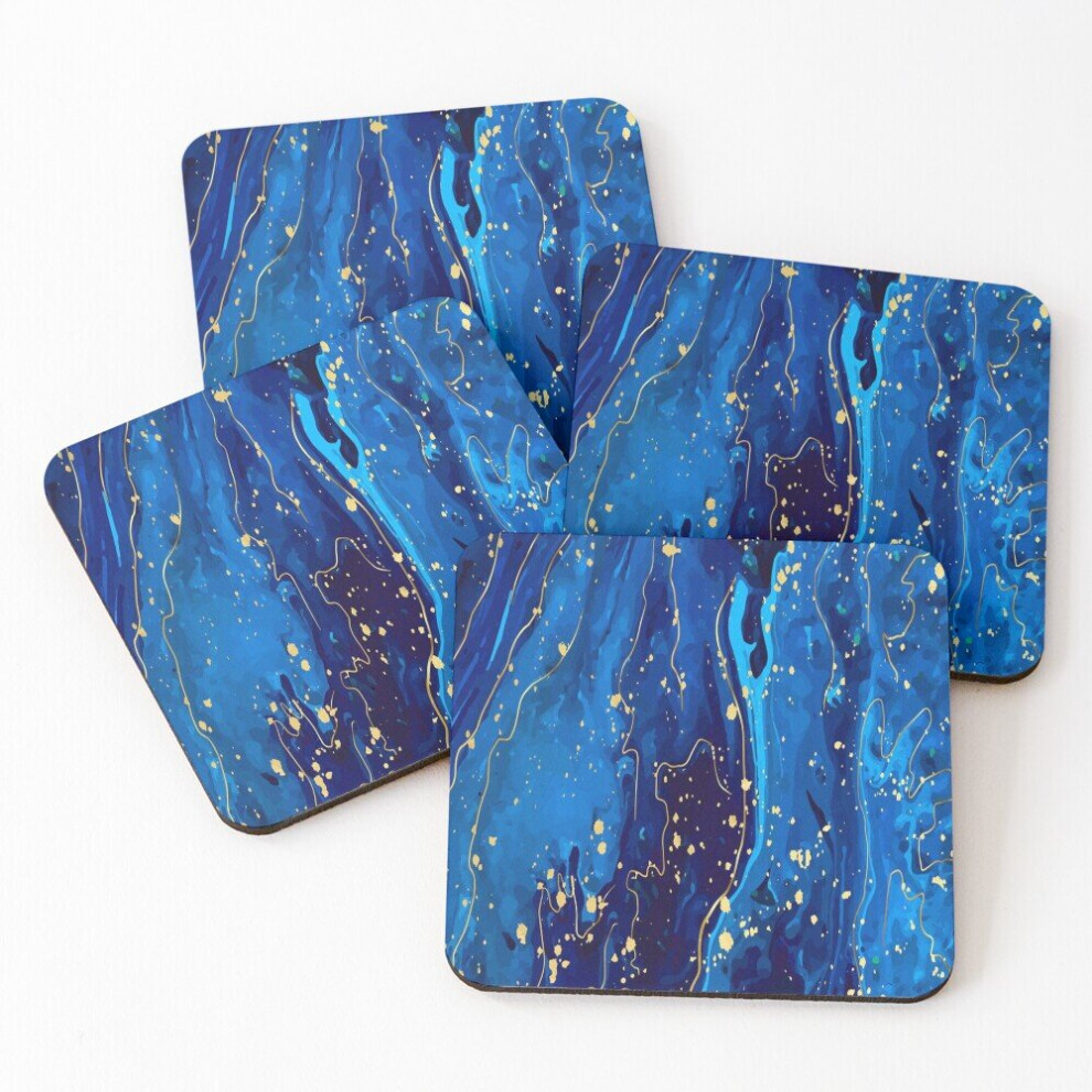 Leather Coasters gold and blue marble Set of 4 / 4 x 4 inch