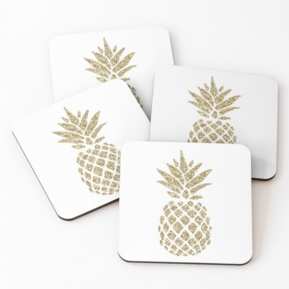 Leather Coasters Gold Glitter Pineapple Set of 4 / 4 x 4 inch