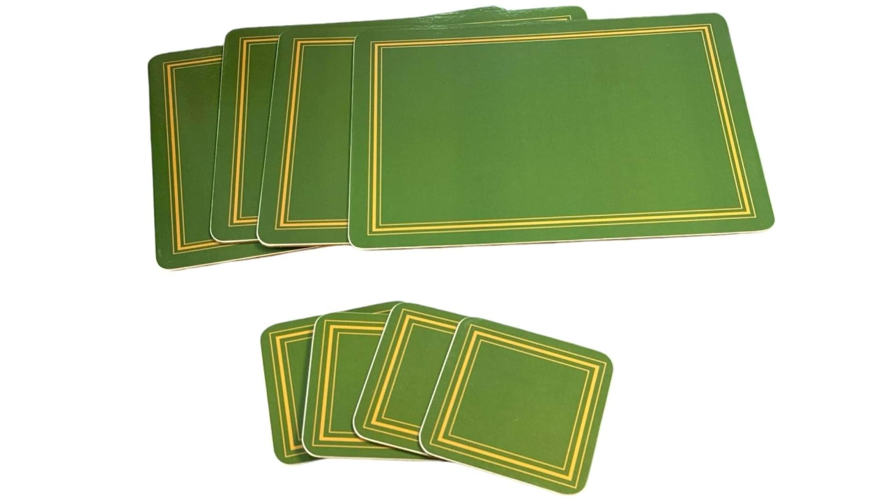 4 Green & Gold Placemats & Coasters Table Setting Cork Back