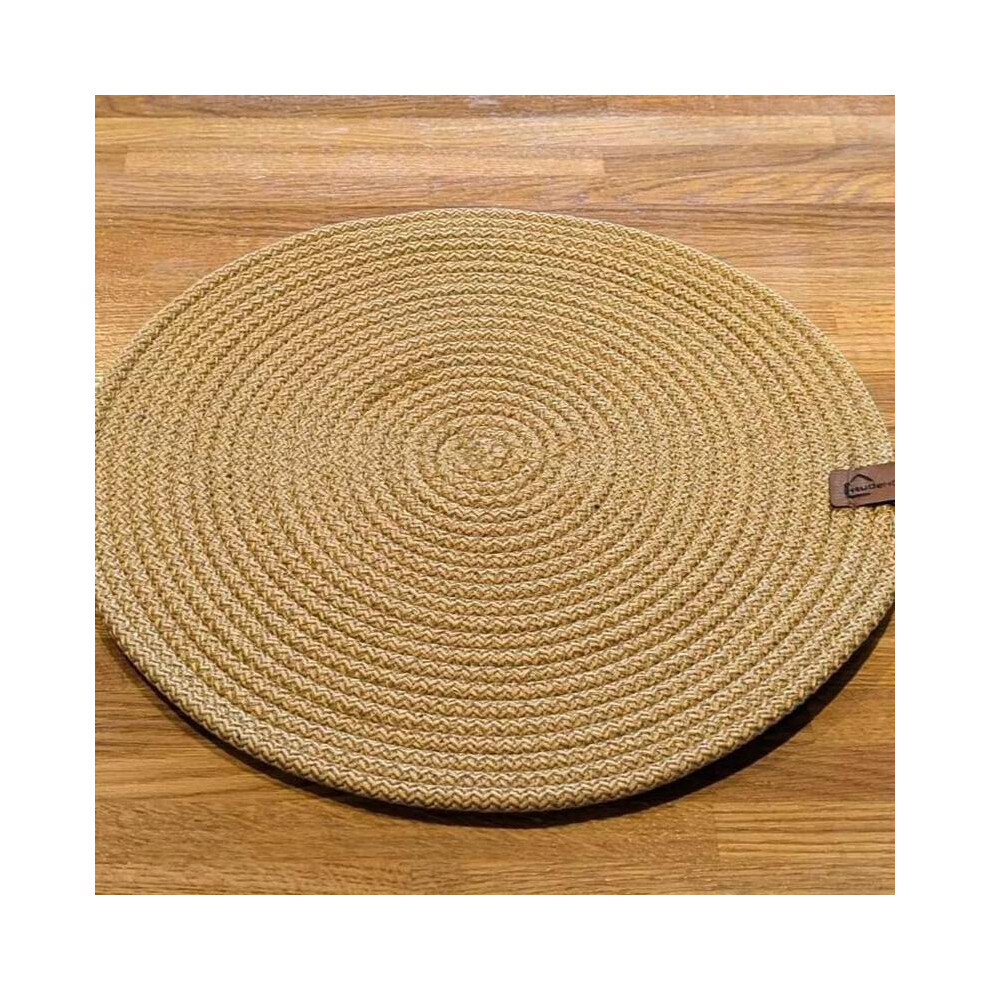 (Gold, Round Coasters) Sets of 6 Placemats or 6 Coasters Place Table Mats Woven Hand Made Knitted