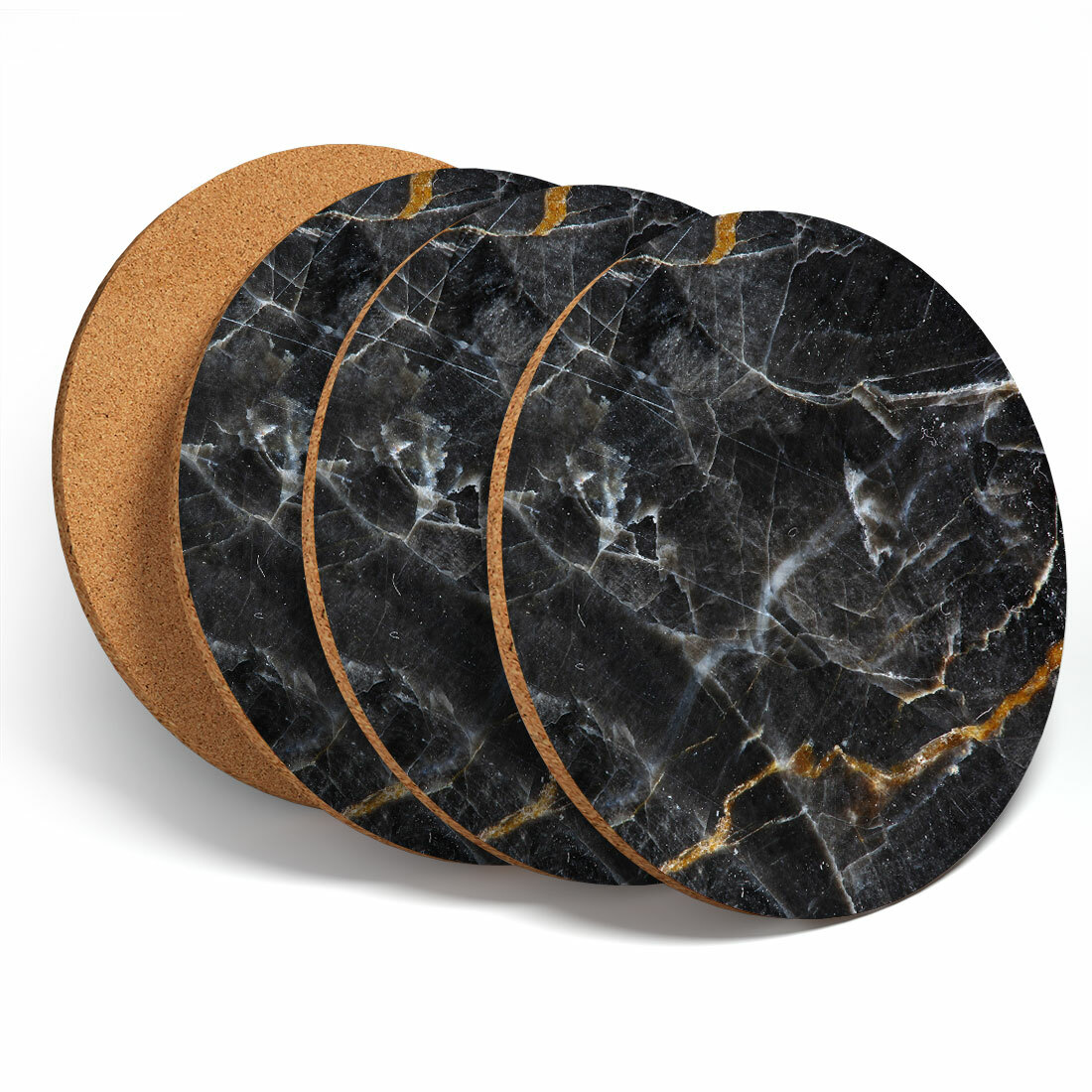 4 Set - Cool Dark Gray Marble Effect Gold Coasters - Kitchen Drinks Gift #3226
