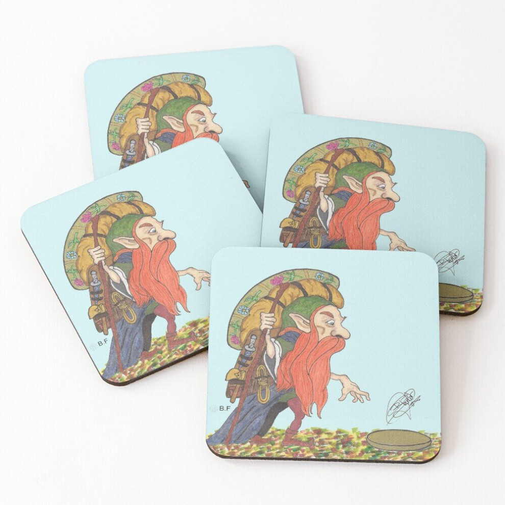 Leather Coasters Gold Seeker Leprechaun Set of 4 / 4 x 4 inch