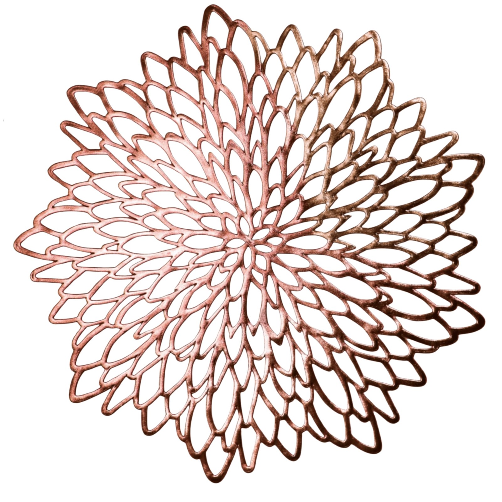 12 Pairs Rose Gold Placemats & Coasters 24 Pcs Metallic Pressed Vinyl For Dinning Table Mats Round Floral Charger Decoration For Wedding Valentine's Day Christmas Anniversaries Holiday By Snowkingdom