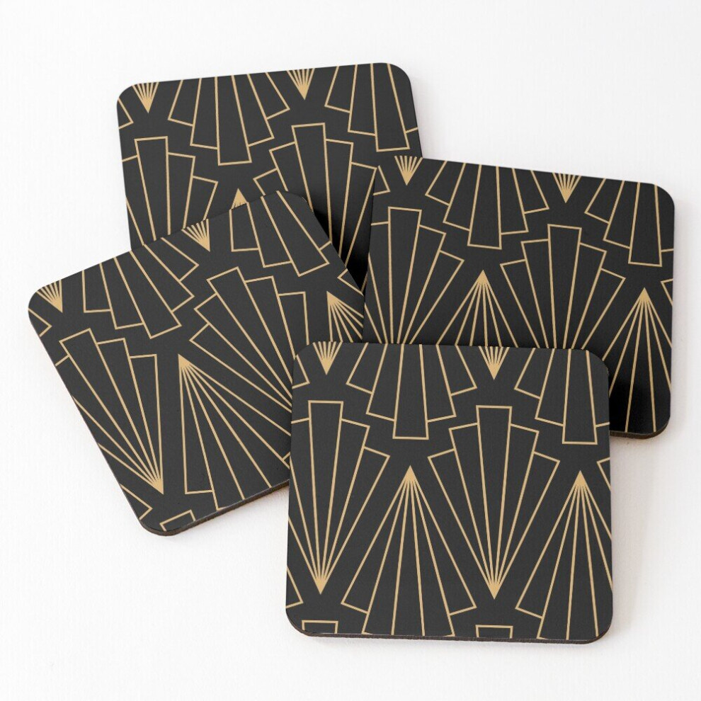 Leather Coasters Gold and Black Art Deco Pattern Set of 4 / 4 x 4 inch