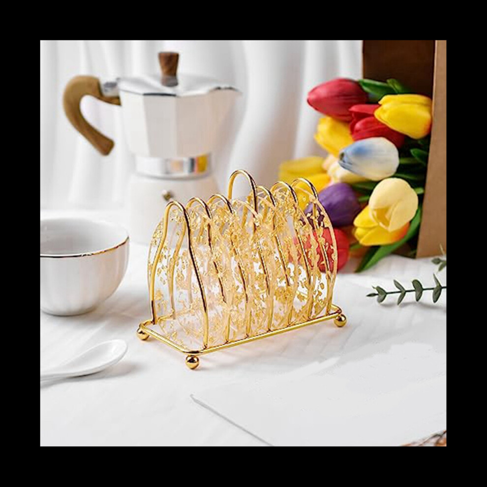 Coaster Holder, 1pcs 4" - for Both Round and Square, Holds 6 Coasters (Gold)
