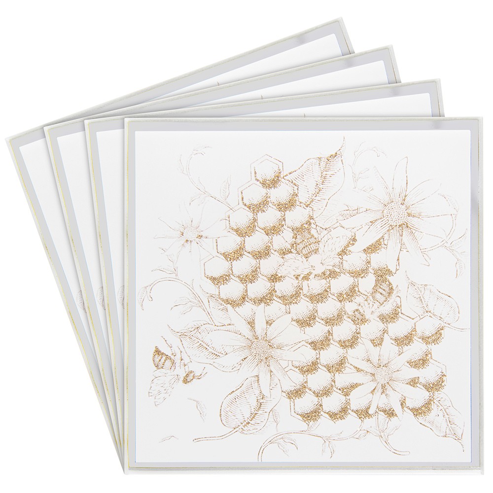 4pcs Honeycomb Mirrored Glass Glitter Gold Bees Coasters Housewarming Gift Idea