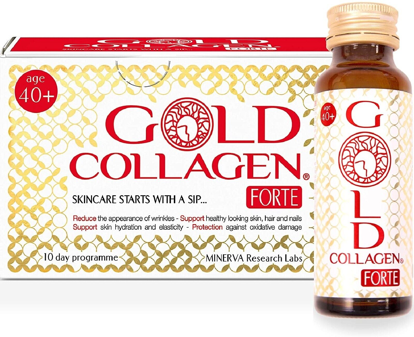 Gold COLLAGEN Forte 40+ 10 Day Supplement - (10 X 50ml Bottles )- Exp 06/2027