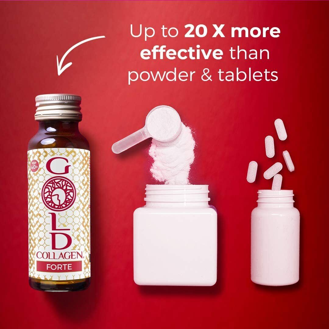 Gold Collagen Forte Age 40+ | Hair Skin & Nails | 50ml x 10 Glass Bottles-BNIB
