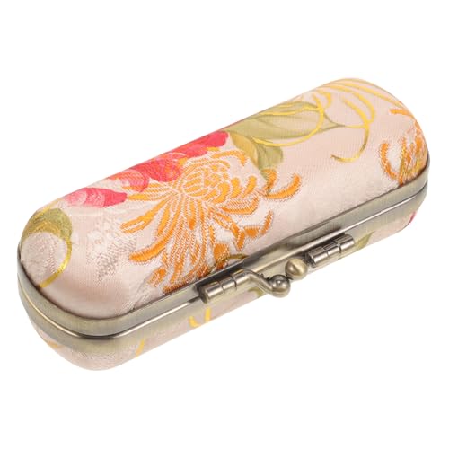 Veemoon Creative Court-Style Brocade Gold Thread Floral Copper Lipstick Case Mirror White, Mini Lipstick Holder for Purse, Portable Cosmetic Container for Women and Teen Girls