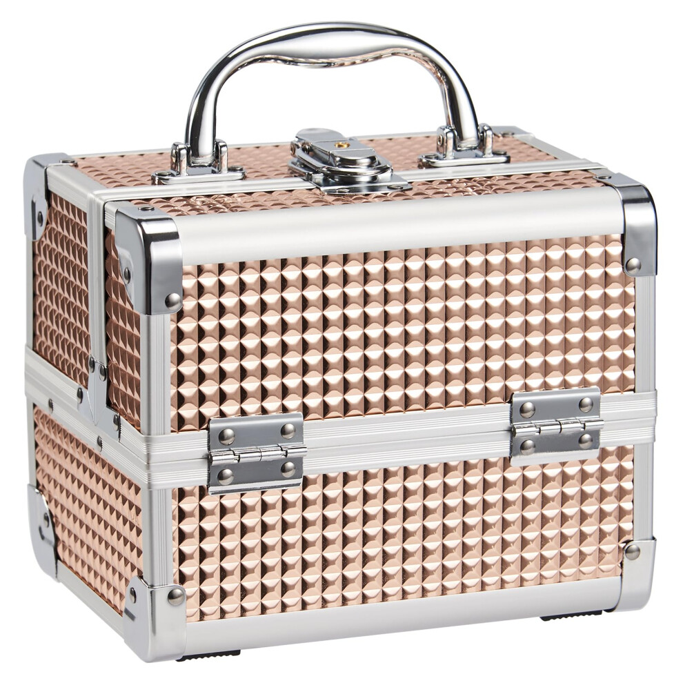 Joligrace Rose Gold Makeup Box Vanity Case Cosmetic Organiser Case Travel Make Up Case Beauty Box with Mirror, 2 Trays, Lockable, Size: 19.5 x 15 x 16cm