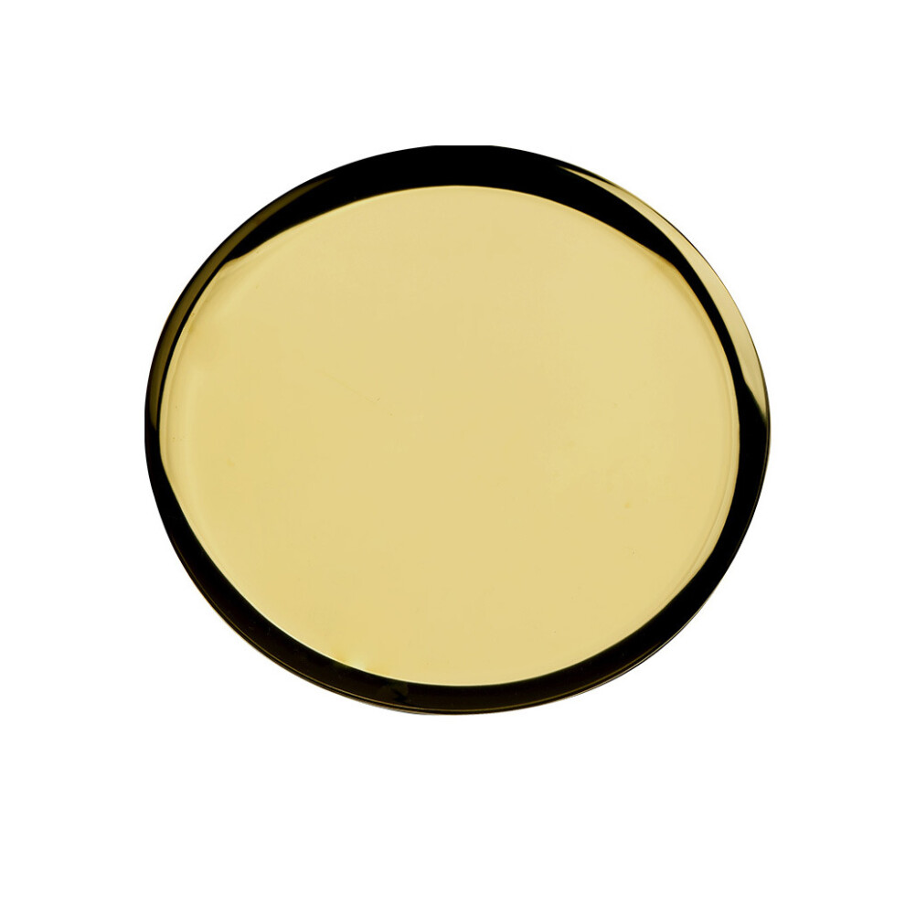 (Gold) Jewelry Plate Metal Plating Cosmetic Tray Dish Mirror Polished Dresser