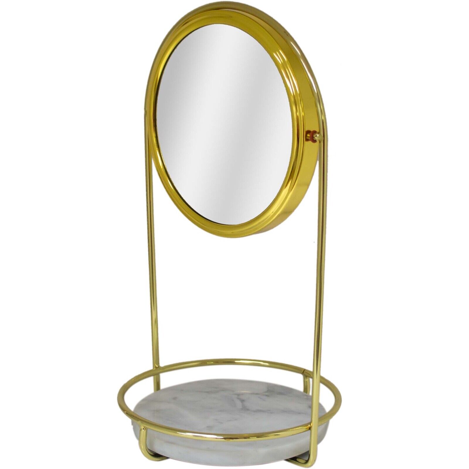 Makeup Mirror Round Marble Base Gold Freestanding Vanity Tabletop Cosmetic Stand